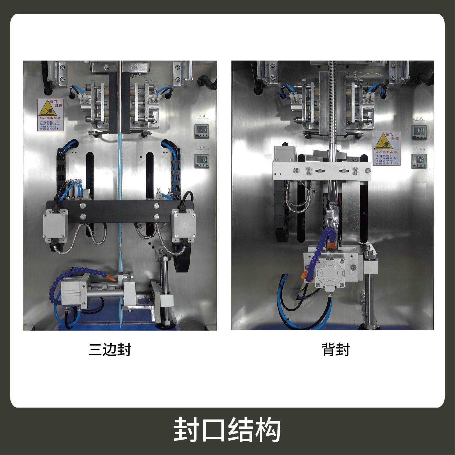3、觸摸屏操作,PLC 控制,伺服電機(jī)控制袋長(zhǎng),性能穩(wěn)定、調(diào)整方便、檢測(cè)準(zhǔn)確。智能式溫控儀,PID調(diào)節(jié),保證將溫度的誤差范圍控制在1℃以內(nèi)。