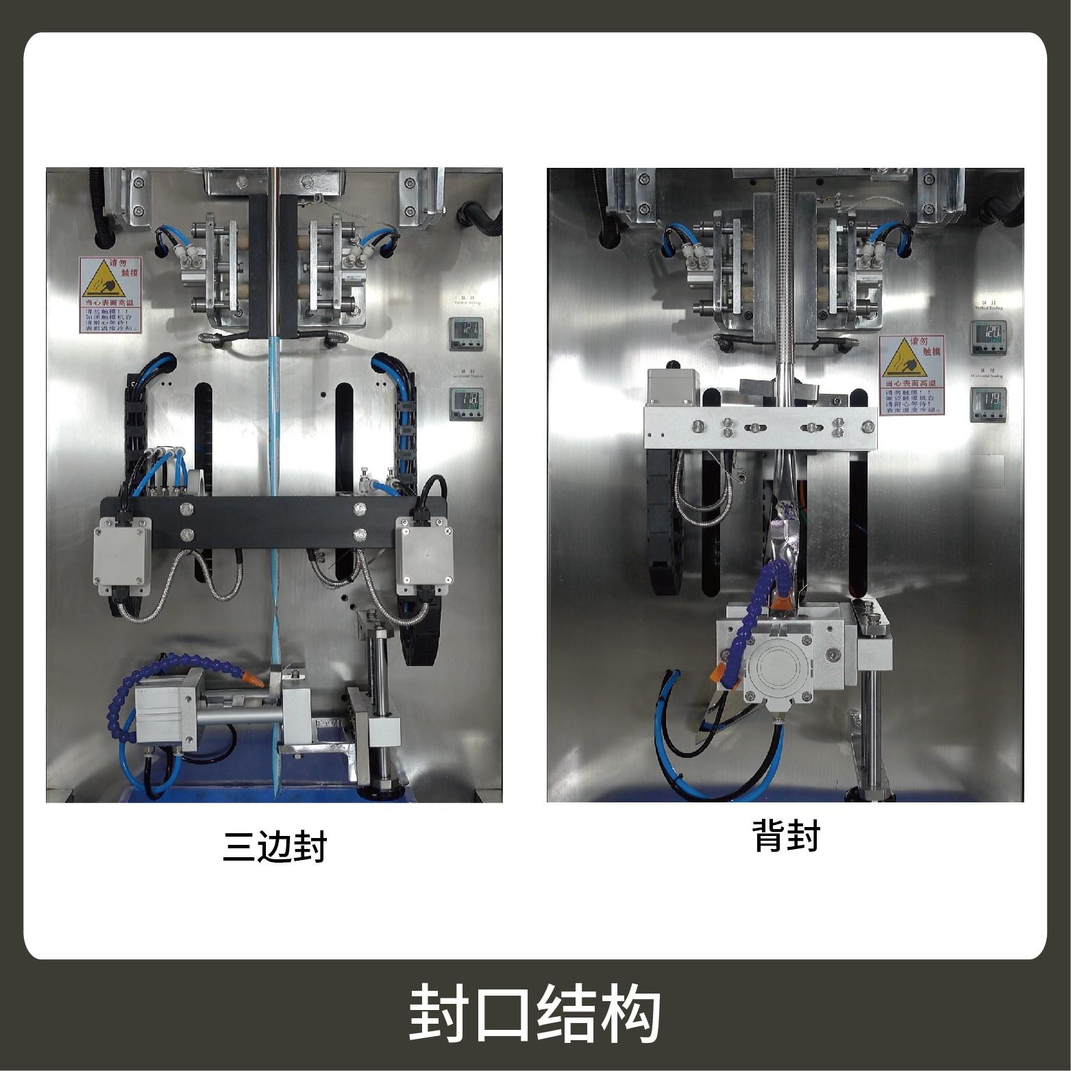 3、觸摸屏操作,PLC 控制,驅(qū)動(dòng)步進(jìn)電機(jī)控制袋長(zhǎng),性能穩(wěn)定、調(diào)整方便、檢測(cè)準(zhǔn)確。智能式溫控儀,PID調(diào)節(jié),保證將溫度的誤差范圍控制在1℃以內(nèi)。